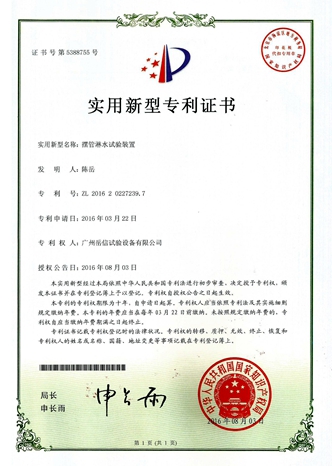 淋雨試驗裝置-實(shí)用新型專利證書【岳信公司】