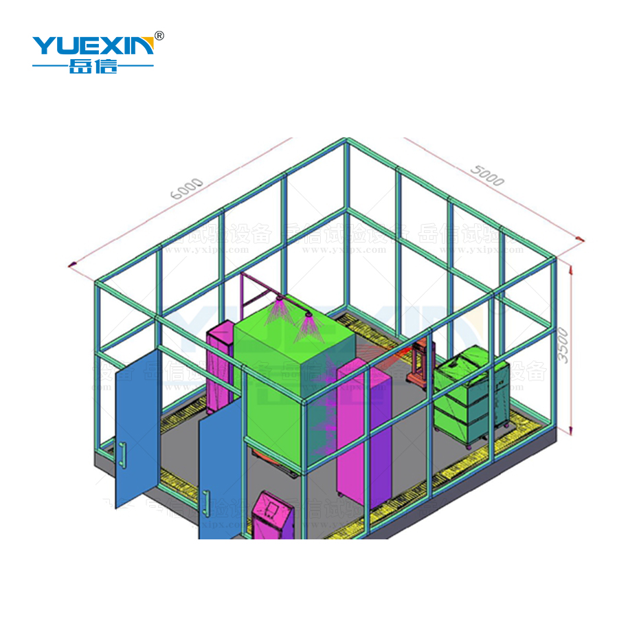 岳信供應(yīng)的IP淋雨試驗房方案,有箱式淋雨試驗,開放式噴淋試驗房,整體淋雨試驗房,可根據(jù)客戶產(chǎn)品使用場景定制防水試驗房、防水試驗臺。與36個行業(yè),超過2852家企業(yè)家共同見證,研發(fā)出10000+套防水試驗解決方案。